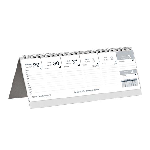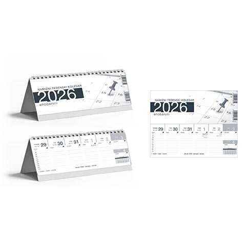 Namizni pokončni koledar čb 2026 – enobarvno in pregledno leto na dosegu roke. Praktičen in estetsko oblikovan namizni pokončni koledar, popoln za pisarno, dom ali recepcijo. Pokončni namizni koledar 2026 omogoča hiter pregled nad tednom, mesecem in pomembnimi datumi, zaradi česar je nepogrešljiv pripomoček pri vsakodnevnem načrtovanju. Enobarvna izvedba in jasno označeni prazniki ter vikendi izboljšajo preglednost, zato je ta namizni koledar 2026 idealna izbira za vsak delovni prostor, kjer sta učinkovitost in organizacija na prvem mestu. Za ogled ostalih koledarjev iz rubrike namizni koledarji kliknite tukaj. Ogled koledarjev s podrobnejšimi opisi najdete na povezavi spletne strani www.tiskovine-naroci.si.