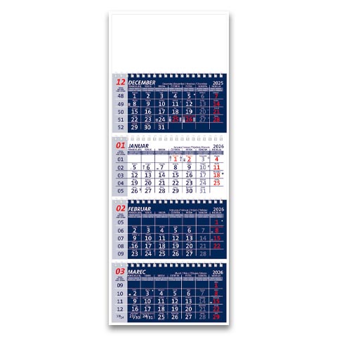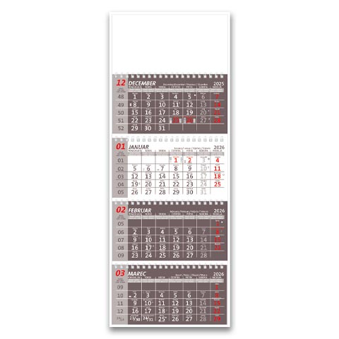 Štiridelni špiralni koledar 2026 je idealna izbira za vse, ki želijo jasen pregled štirih mesecev hkrati. Špiralna vezava omogoča enostavno listanje in dolgo življenjsko dobo, zato so štiridelni špiralni koledarji primerni tako za poslovno kot osebno uporabo. Zaradi svoje praktične zasnove so koledarji nepogrešljivi v pisarnah, podjetjih in domačem okolju, hkrati pa jih lahko personalizirate z logotipom ali posvetilom, kar povečuje njihovo uporabno in promocijsko vrednost. Če iščete kakovosten in uporaben štiridelni špiralni koledar 2026, je to prava rešitev.