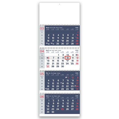 Štiridelni koledar 2026 omogoča jasen pregled celotnega leta v štirih preglednih delih. Med štiridelnimi koledarji 2026 izstopa zaradi praktične zasnove in moderne barvne oblike. Kot eleganten štiridelni barvni koledar s špiralo je primeren za pisarne, poslovne prostore in darila. Ta kakovostno izdelan štiridelni spiralni barvni koledar 2026 združuje preglednost, uporabnost in estetski videz. Štiridelni koledar 2026 prinaša preglednost in barvit dizajn, odličen med štiridelnimi koledarji 2026 in praktičen štiridelni spiralni koledar. Za ogled ostalih koledarjev iz rubrike ŠTIRIDELNI KOLEDARJI kliknite tukaj. Ogled koledarjev s podrobnejšimi opisi najdete na povezavi spletne strani www.tiskovine-naroci.si