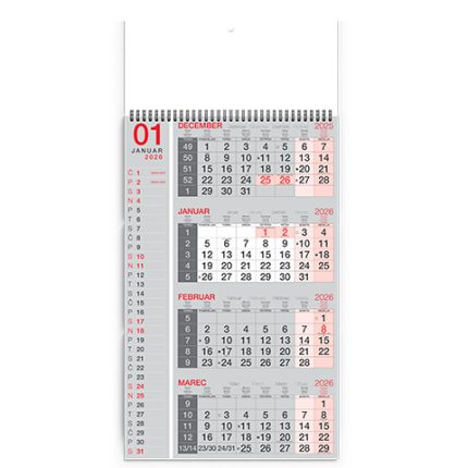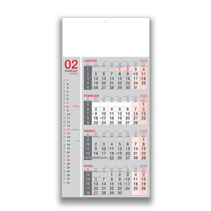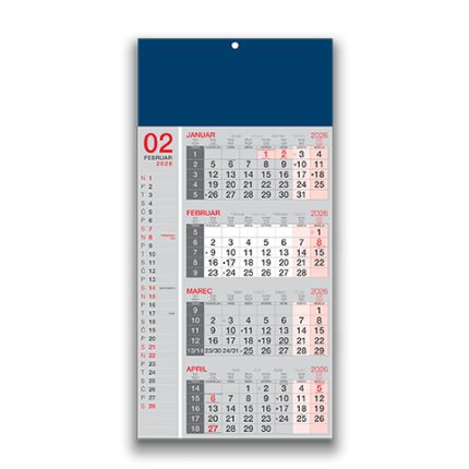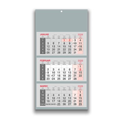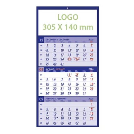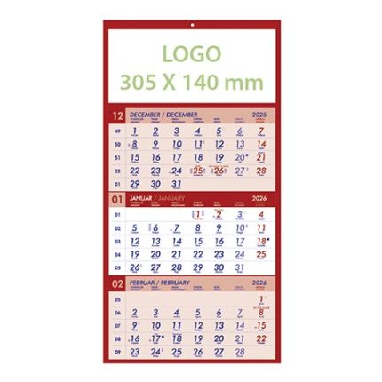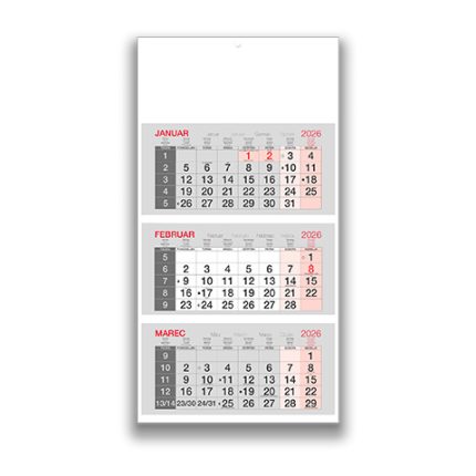 Tridelni lepljen koledar 2026 – Pregleden lepljen koledar 2026 za pisarne in podjetja, kakovostni lepljeni koledarji 2026.