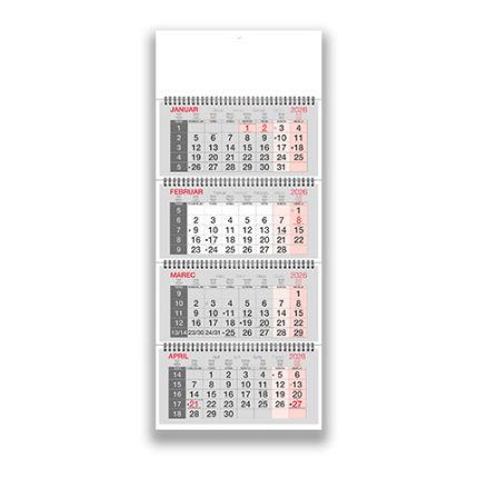 štirimesečni-koledar -s-planerjem 2026 – štiridelni barvni koledar za domačo ali pisarniško uporabo, praktičen in eleganten.